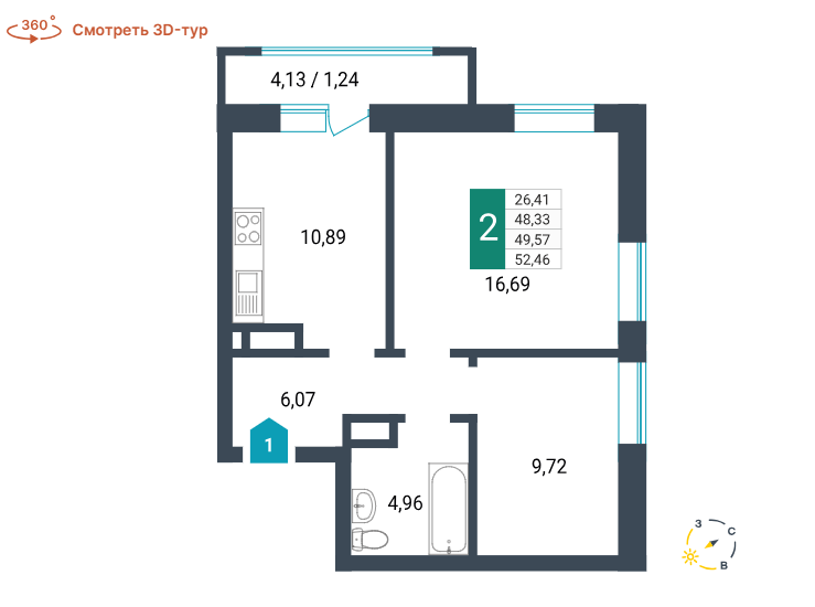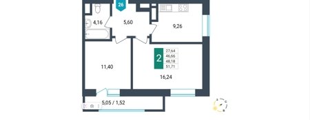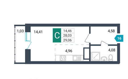 1 секция – 16-ти этажный дом со сквозными подъездами.